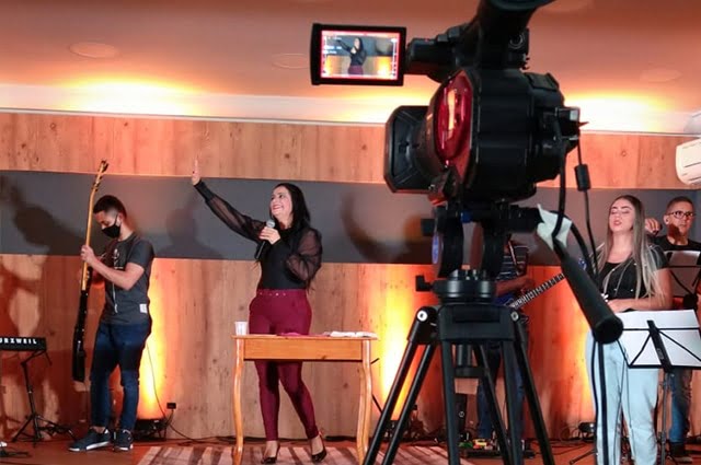 Você não precisa de um orçamento grande ou uma equipe numerosa. Embora você possa alcançar um público global ao fazer streaming e publicar os vídeos, também é possível configurar sermões pré-gravados para reprodução em um projetor.